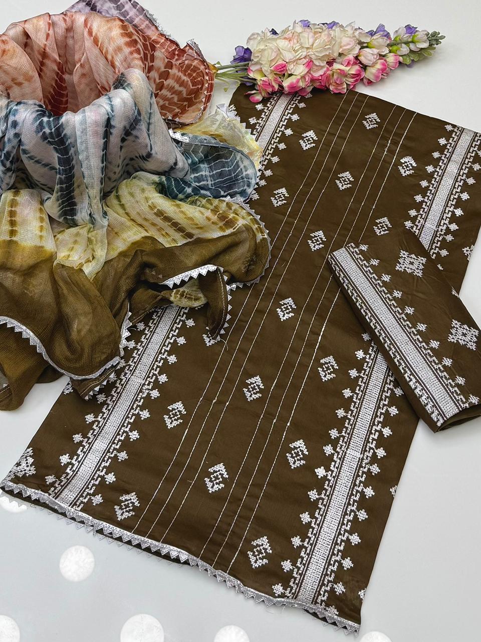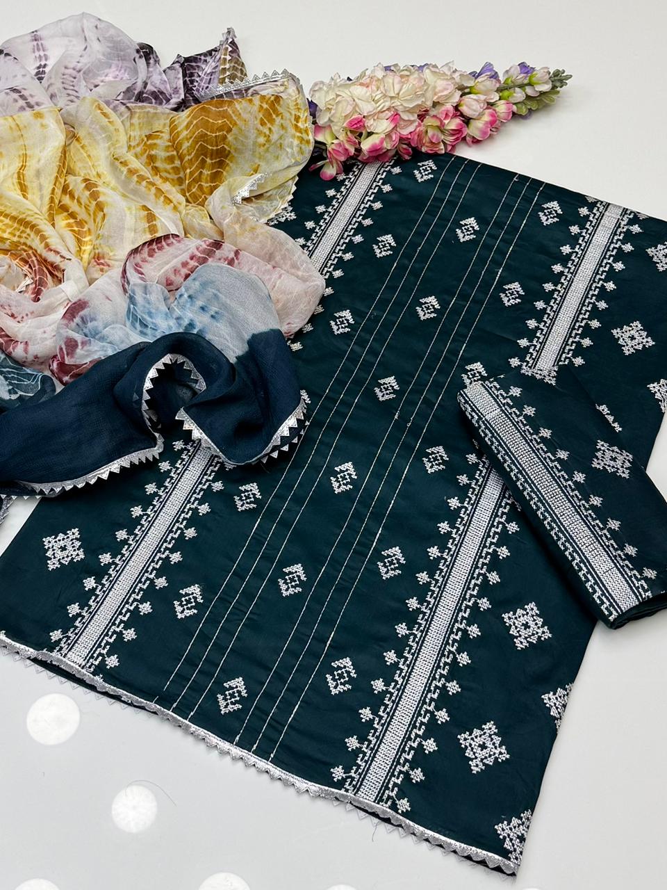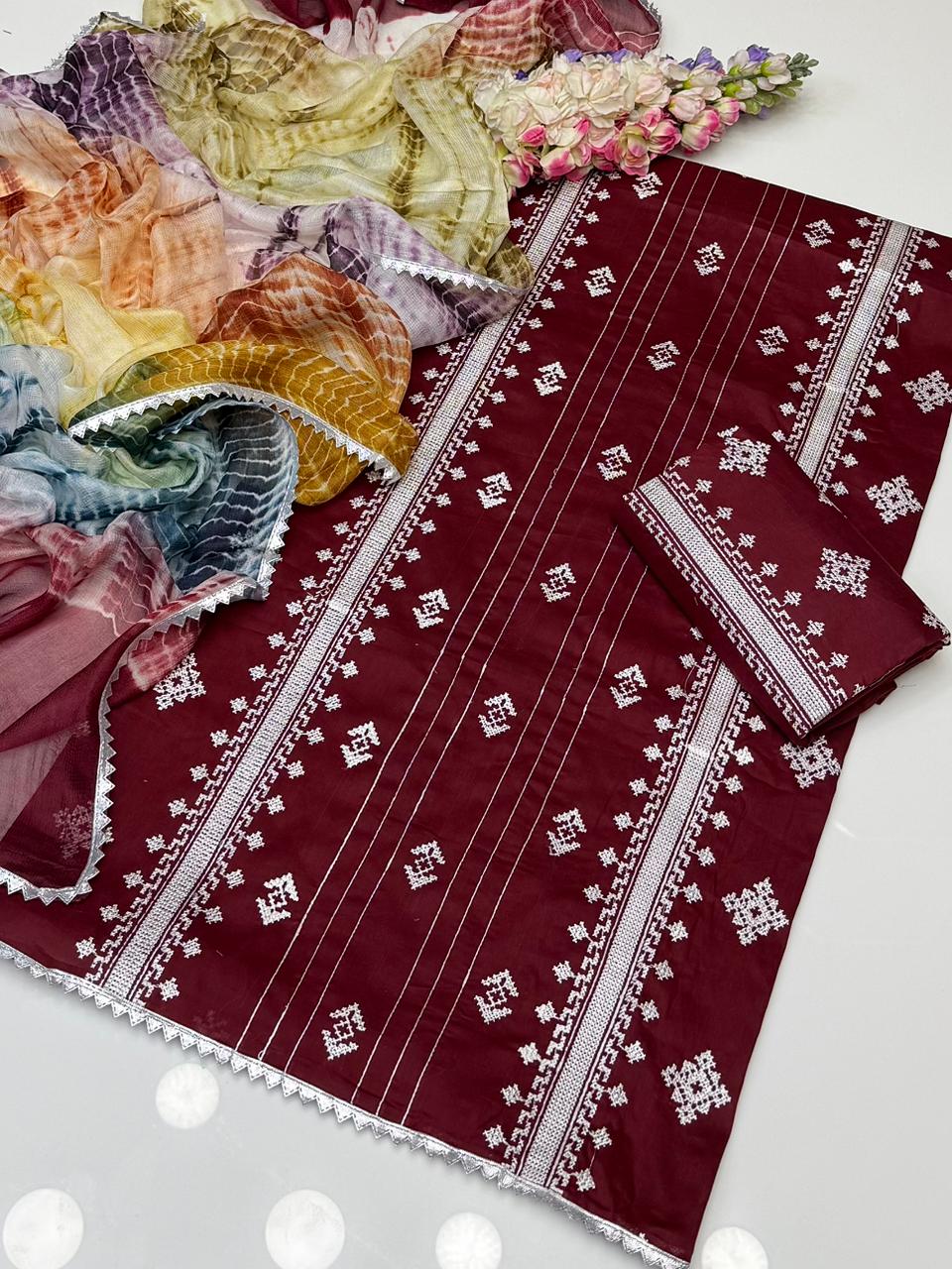Eid Beautiful Outfit Gtm Lawn Cross Stiched. Shirt Jall With Shafon. Dye and tye Dupatta with Cross Stiched Border dupatta 3 PC Dress 👗 .✨🌿