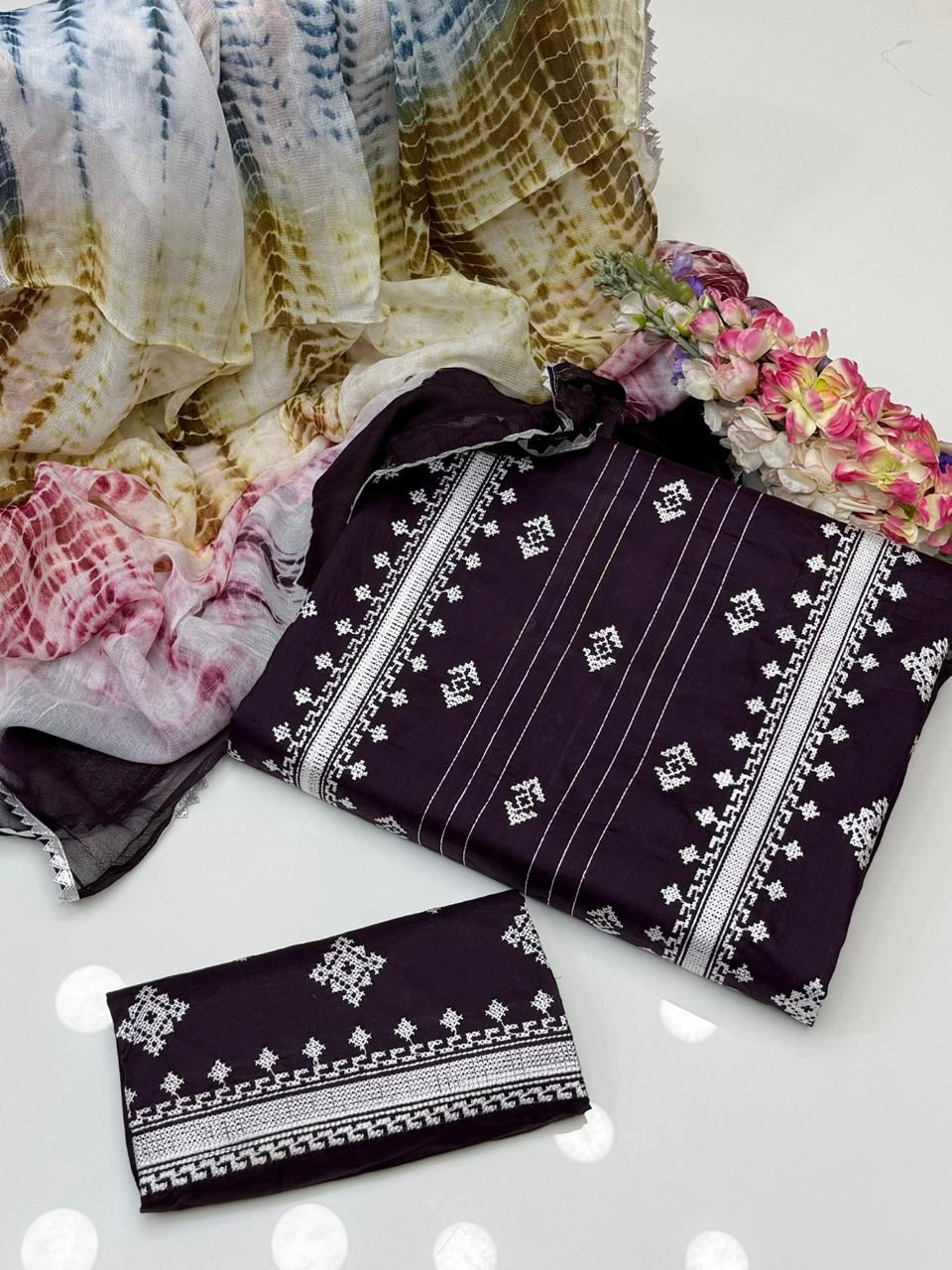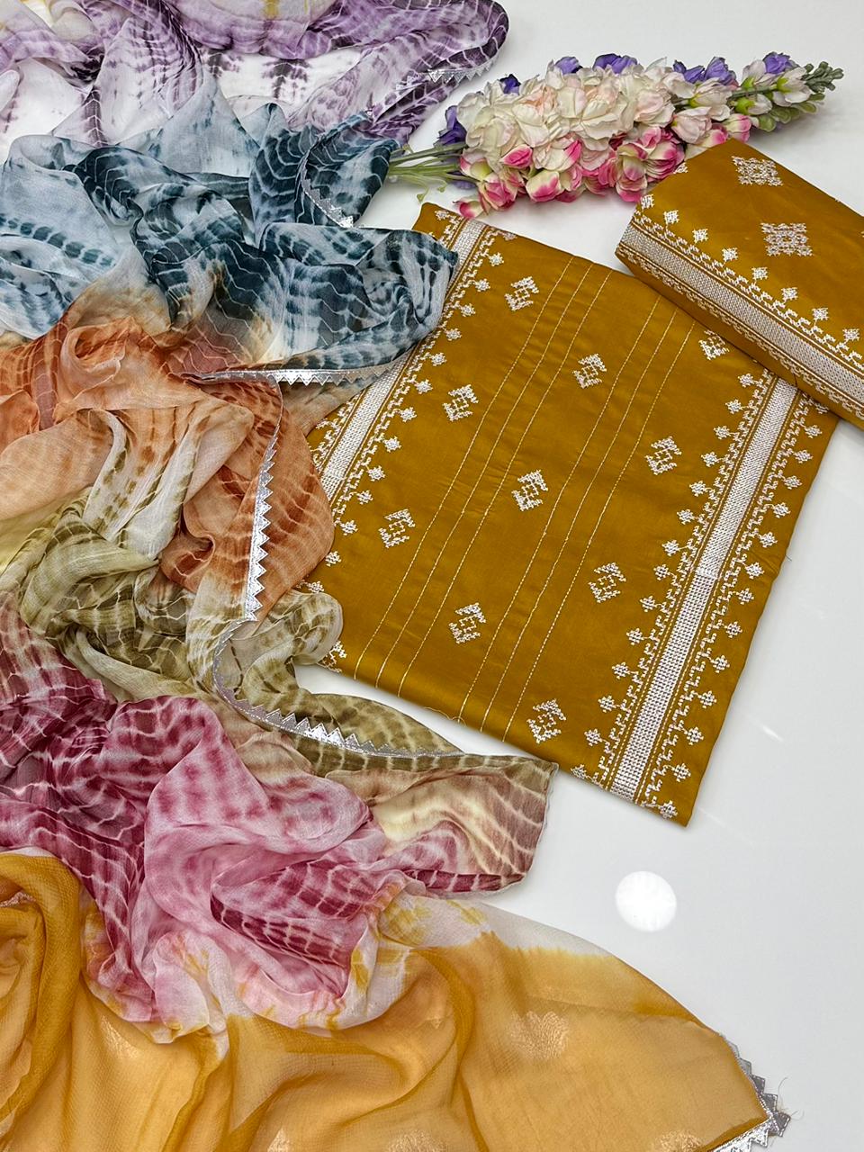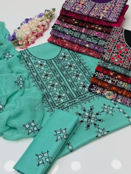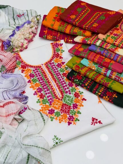 Eid Beautiful Outfit Gtm Lawn Cross Stiched. Shirt Jall With Shafon. Dye and tye Dupatta with Cross Stiched Border dupatta 3 PC Dress 👗 .✨🌿