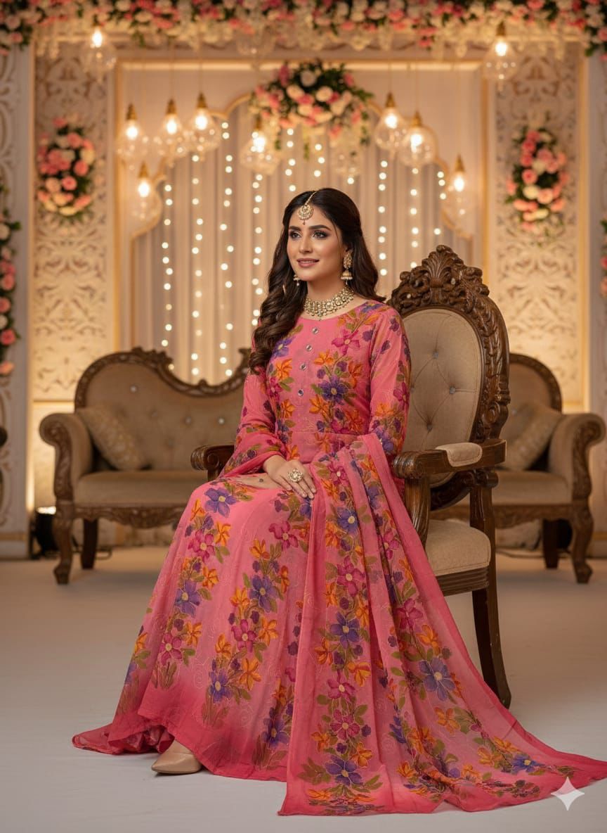 Handmade Shafon Chunri Marrori Flower 🌺 Gotta Shirt back Kurta Style. Seprate Bazo. With Heavy Border. With 2 shade Shafon Chunri Dupatta 2 pc Dress 👗