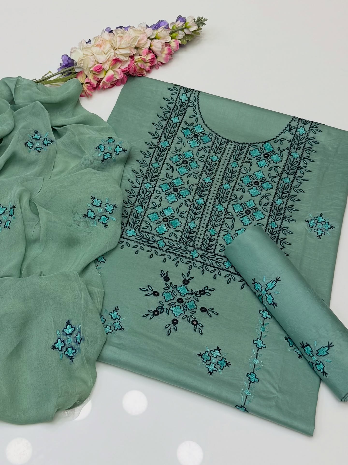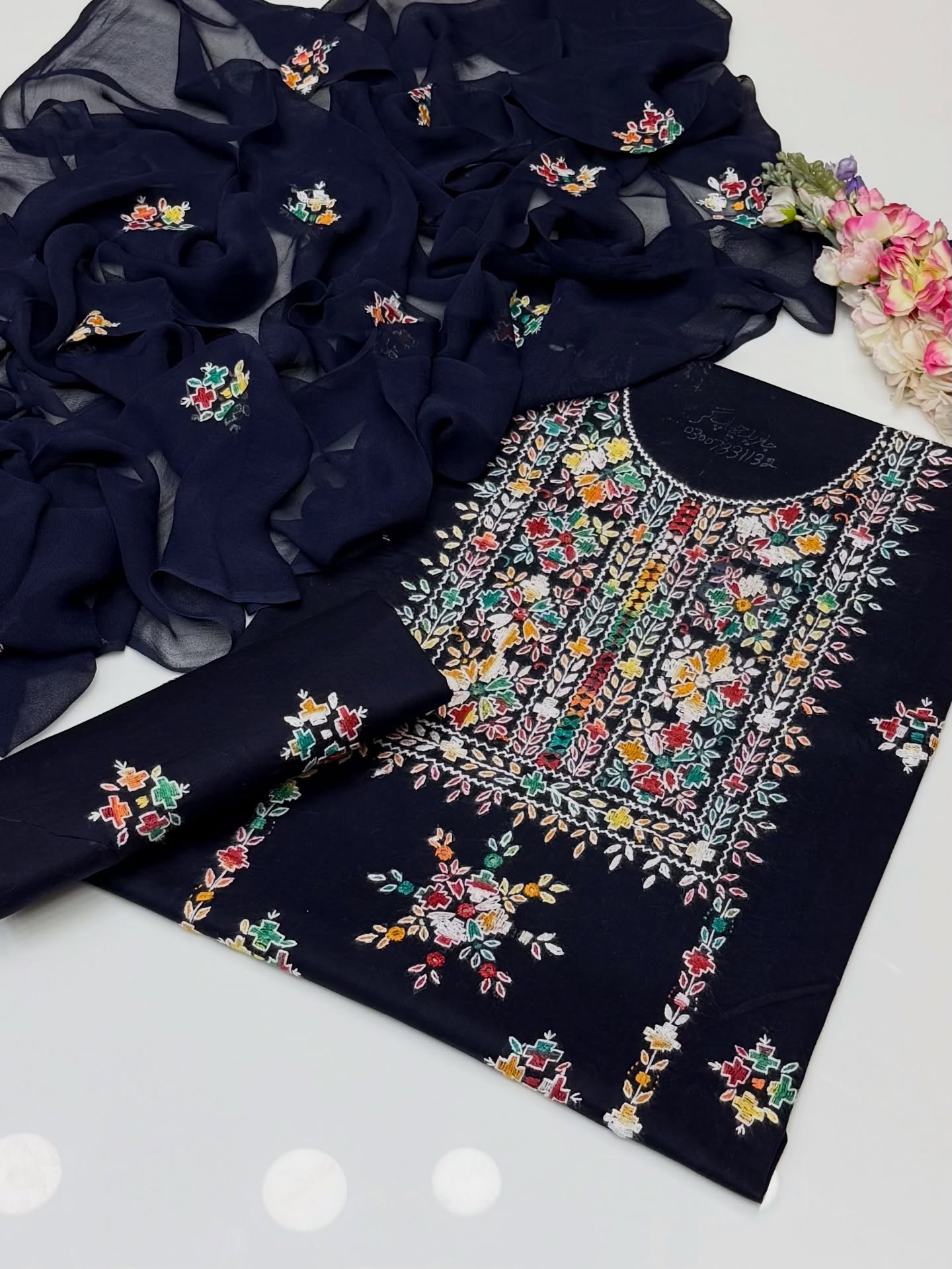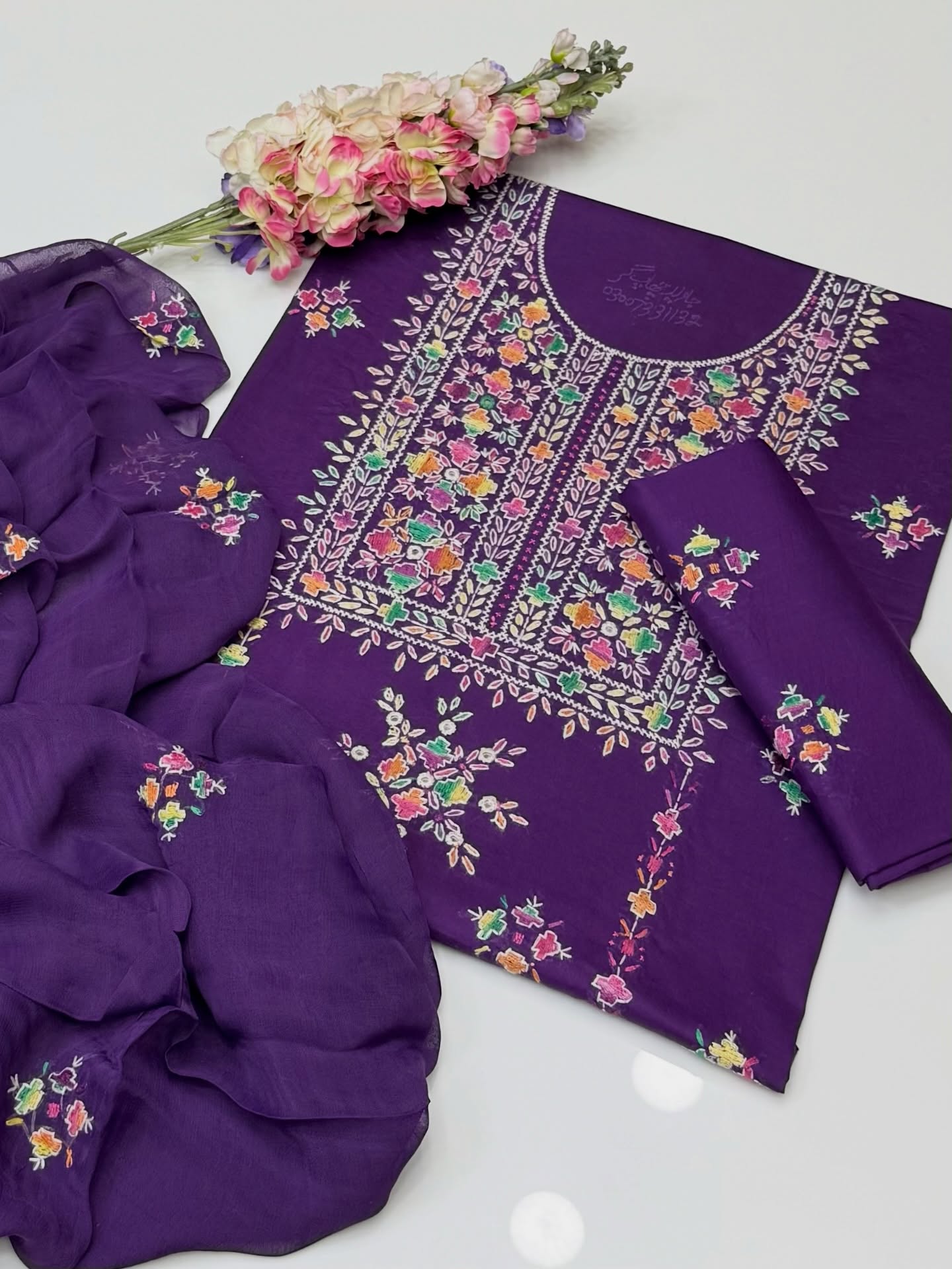Handmade pakka makri tanka on soft shifoon 2pc