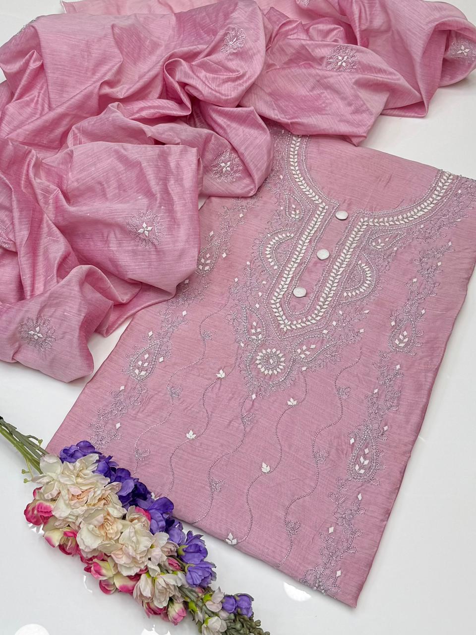 Handmade Shafon Chunri Marrori Flower 🌺 Gotta Shirt back Kurta Style. Seprate Bazo. With Heavy Border. With 2 shade Shafon Chunri Dupatta 2 pc Dress 👗