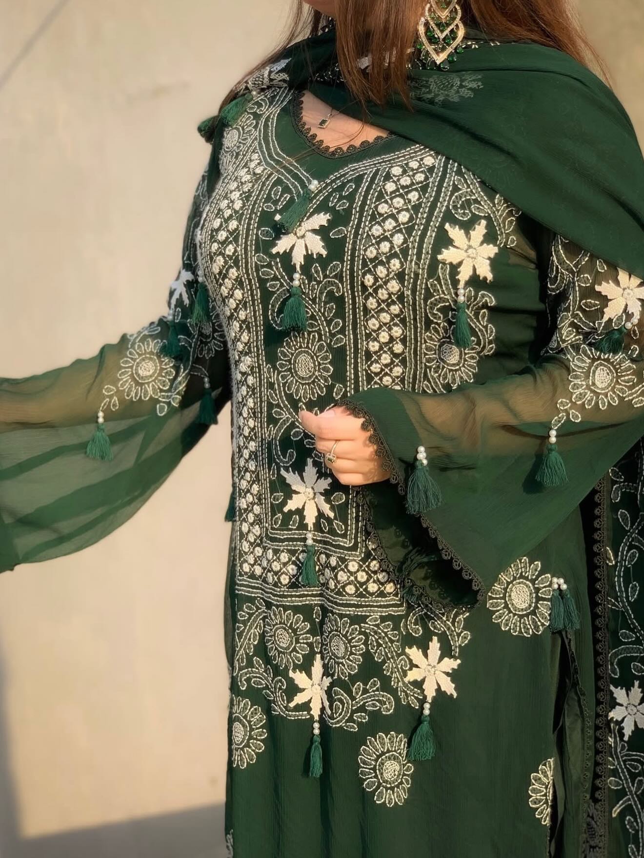 Handmade shadow sheesha benazir Boti Galla. Shafon. Shirt with shadow sheesha benazir Boti Dupatta 2 pc Dress