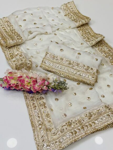Korean Georgette Multani Hand Embroidered Chadar