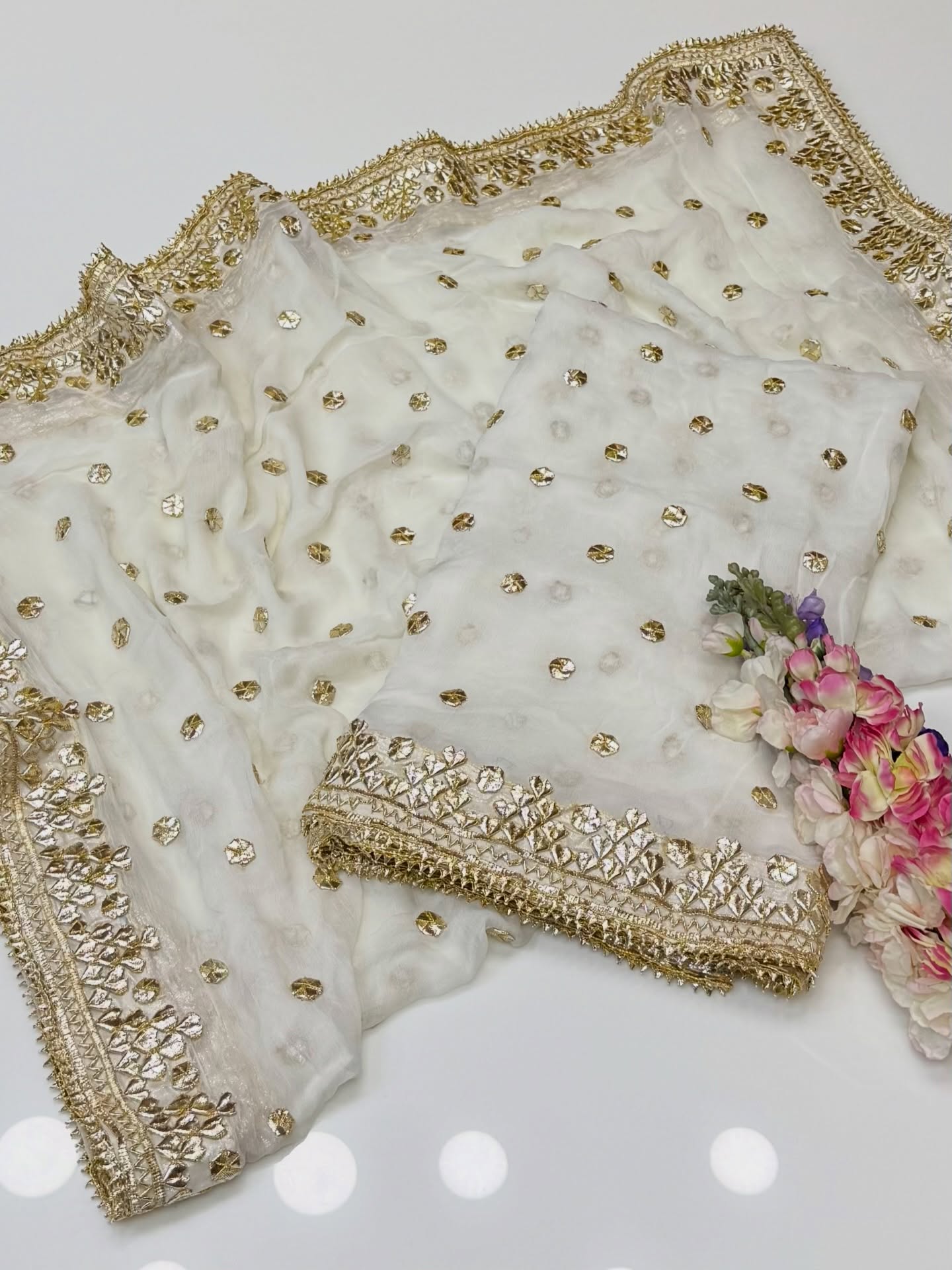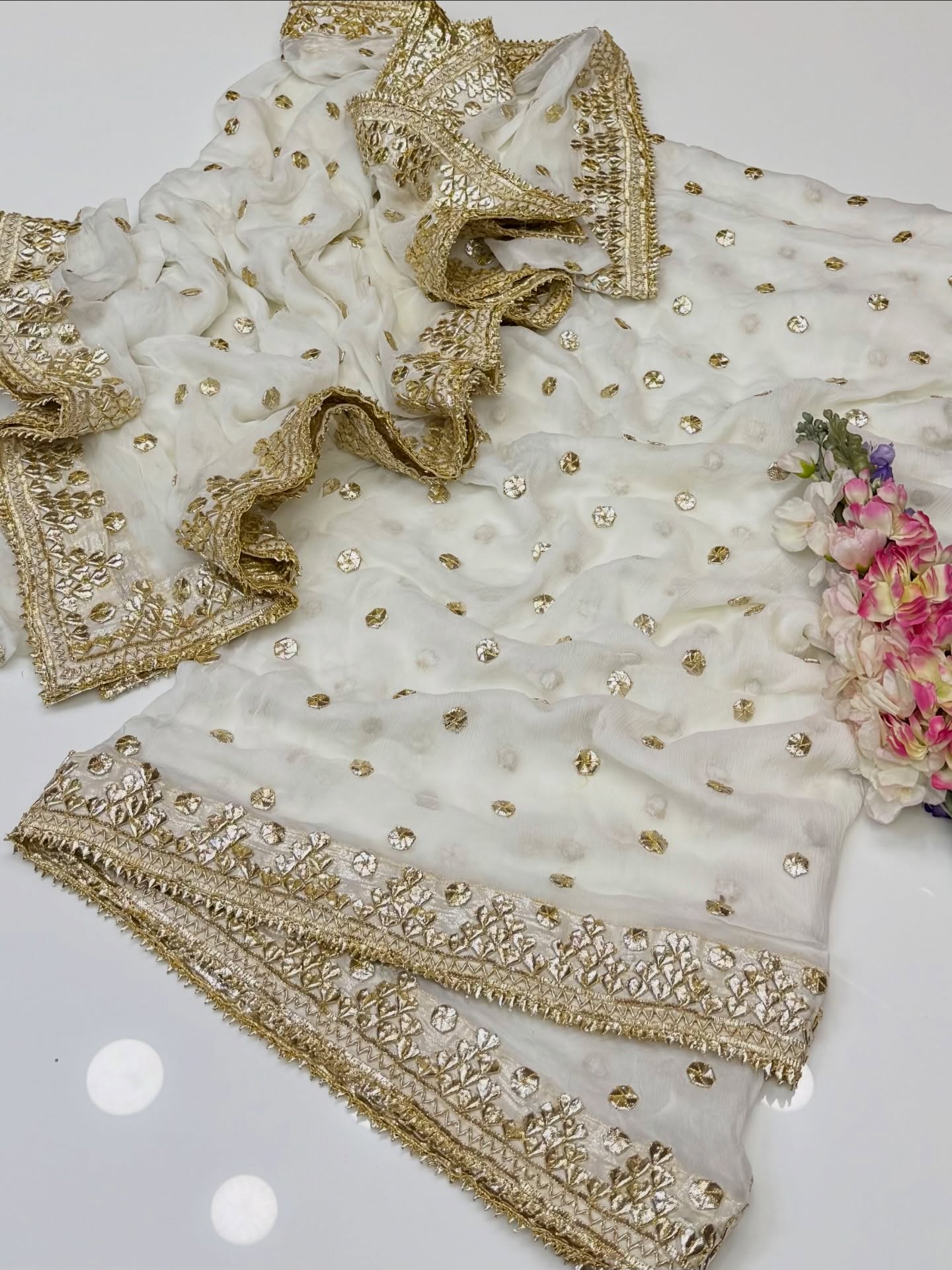 Gotta Shirt Semi Pure Shafon With 4 side Tilla Rose Gotta Dupatta. 2 Suit